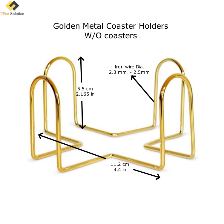 Built to last, this coaster holder metal unit is crafted from high-quality iron wire with a thickness ranging from 2.3mm to 2.5mm. The material is then treated with a spray powder coating, resulting in a smooth, chip-resistant golden finish that will maintain its luster even after thousands of uses.